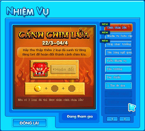 Bước 5: Sau khi thu thập xong các bạn vào khu vực nhiệm vụ để nhận quà nhé.