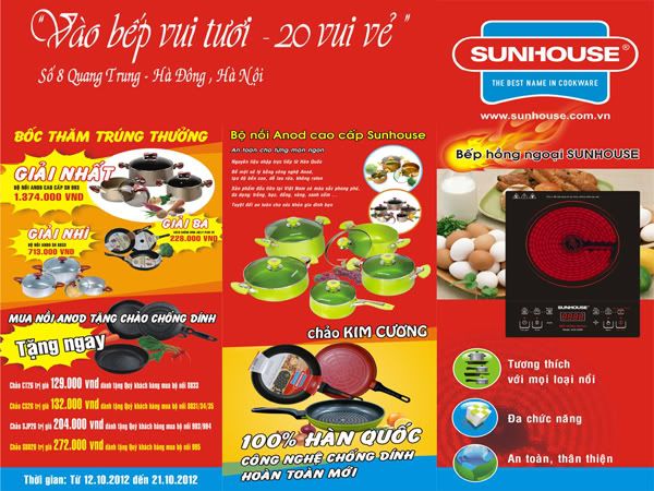 Khách hàng khi mua bất kỳ sản phẩm nào của Sunhouse trong thời gian diễn ra chương trình đều được tham gia vào chương trình: “Bốc Thăm Trúng Thưởng” để nhận được các phần quà vô cùng hấp dẫn. Thời gian tiến hành bốc thăm diễn ra từ 10h30 đến 11h ngày 21/10/2012 và trao giải thưởng vào 17h ngày 21/10/2012.