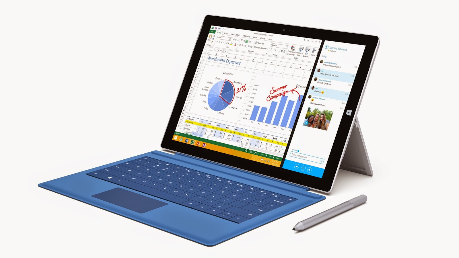 Với việc chạy hệ điều hành Windows 8.1 đầy đủ, Máy tính bảng Surface Pro 3 được xem là tuyển lựa lý tưởng cho người dùng cho công việc. Sản phẩm này cũng có màn hình siêu nét kích tấc 12 inch độ phân giải 2.160 x 1.440.