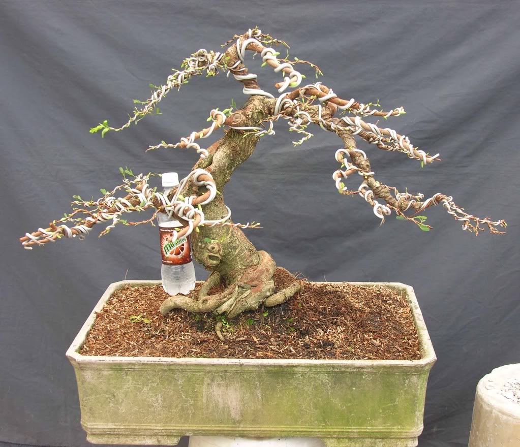 Cây me già già, đế và thân quái quái, mới làm chi, đang bung mầm.