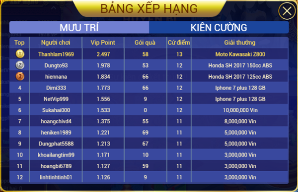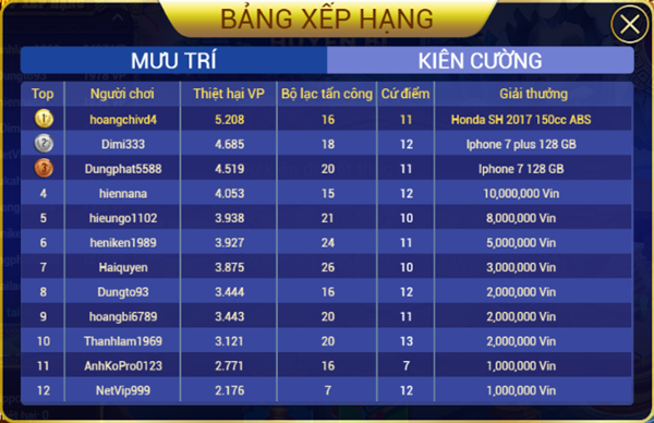 Dưới đây BQT VinPlay xin cập nhật bảng xếp hạng của sự kiện: