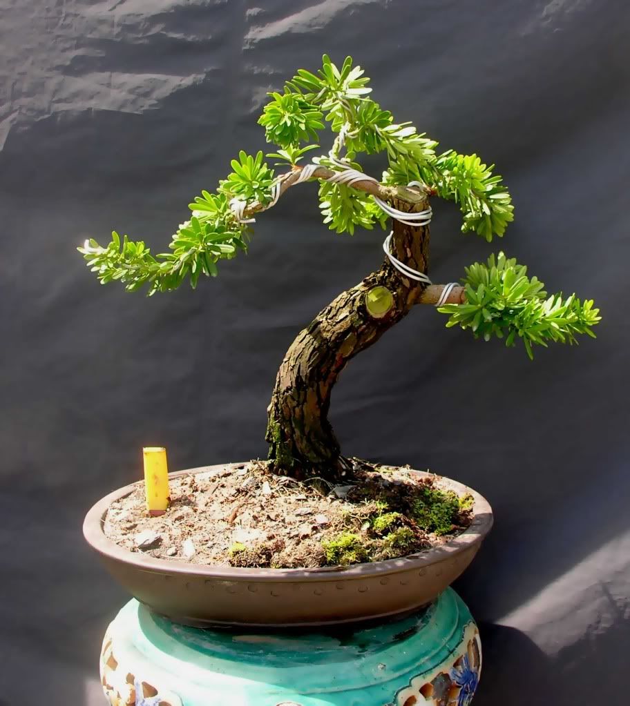 2 cây Vạn niên tùng Kim Cương (Ghép trên thân Vạn Niên Tùng Đài loan), to bẳng cổ tay, cao khoảng 40-45cm, chi cành to cỡ ngón tay, vừa uốn làm tàn xong (Giá tham khảo 15 trieu/cặp)